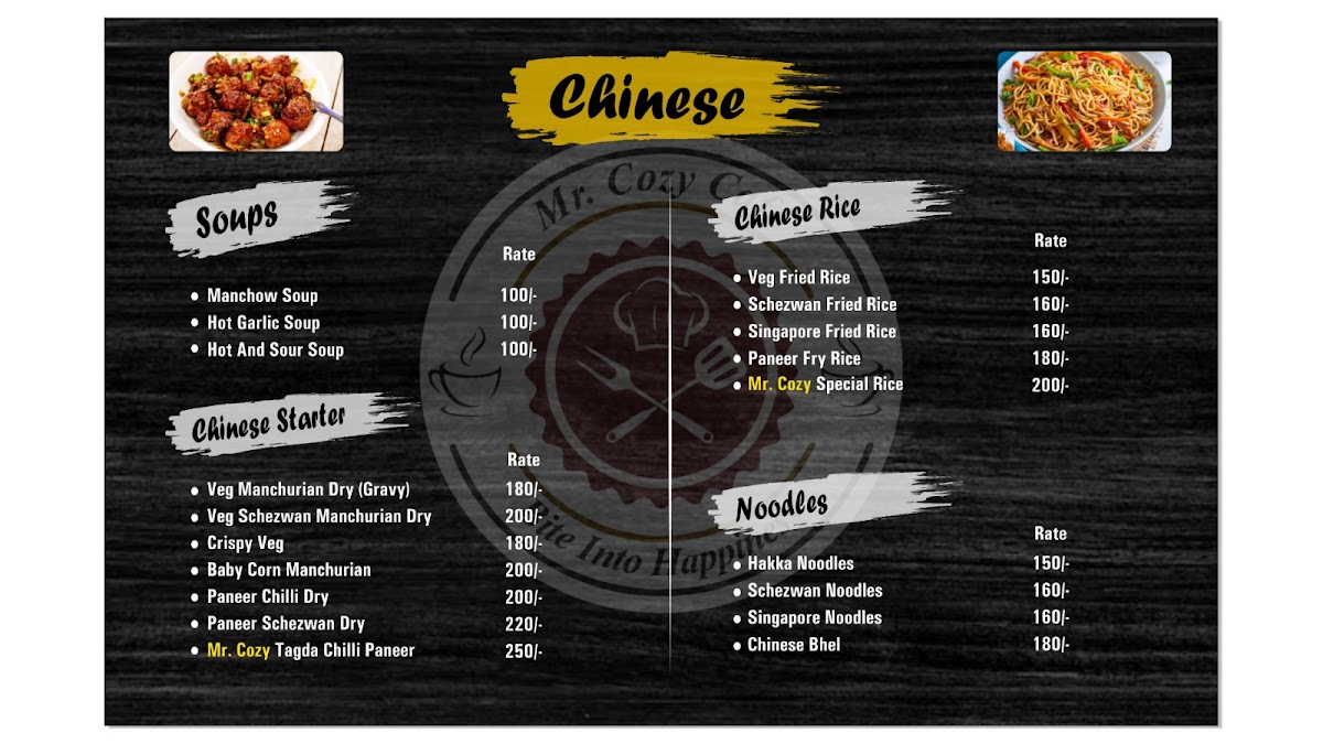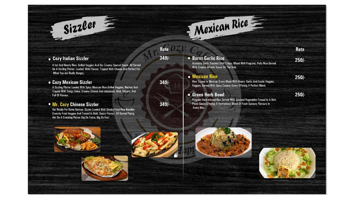At Mr. Cozy Café, the menu is a delightful exploration of flavors. Start with their tantalizing Hakka Noodles or opt for a spicy kick with Schezwan Noodles. For pizzaiolos, the selection includes scrumptious options like the Mr. Cozy Wood Fire Pizza and a variety of veggie toppings catering to all tastes.